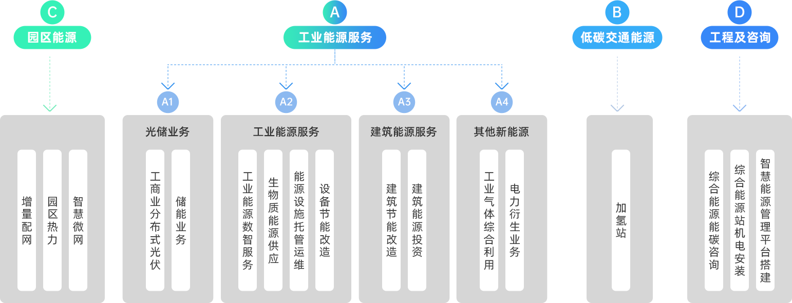 中裕智慧能源定位于综合能源服务商,实施区域能源统筹规划。从客户实际需求出发,采用多能互补、能源梯级利用、低碳可再生等新能源优先的策略,规划、设计、投资、建设、运营一体化的商务模式,为用户提供供冷、供热(蒸汽)、供电服务。公司致力于打造以可再生能源利用为核心、多能源耦合的综合能源系统,利用数智化管理平台,实现区域能源的统一调度管理,推进区域“低碳、高效、低成本、可持续”发展。